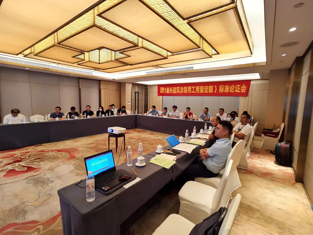 当晚,委员会各主席成员来到海天大剧院酒店,针对由七彩建设主笔编制的《室外建筑涂装用工用量定额》标准开展了论证会。会上,七彩建设认真听取了各方的意见和建议,为该标准后续的完善工作做足了充分铺垫。