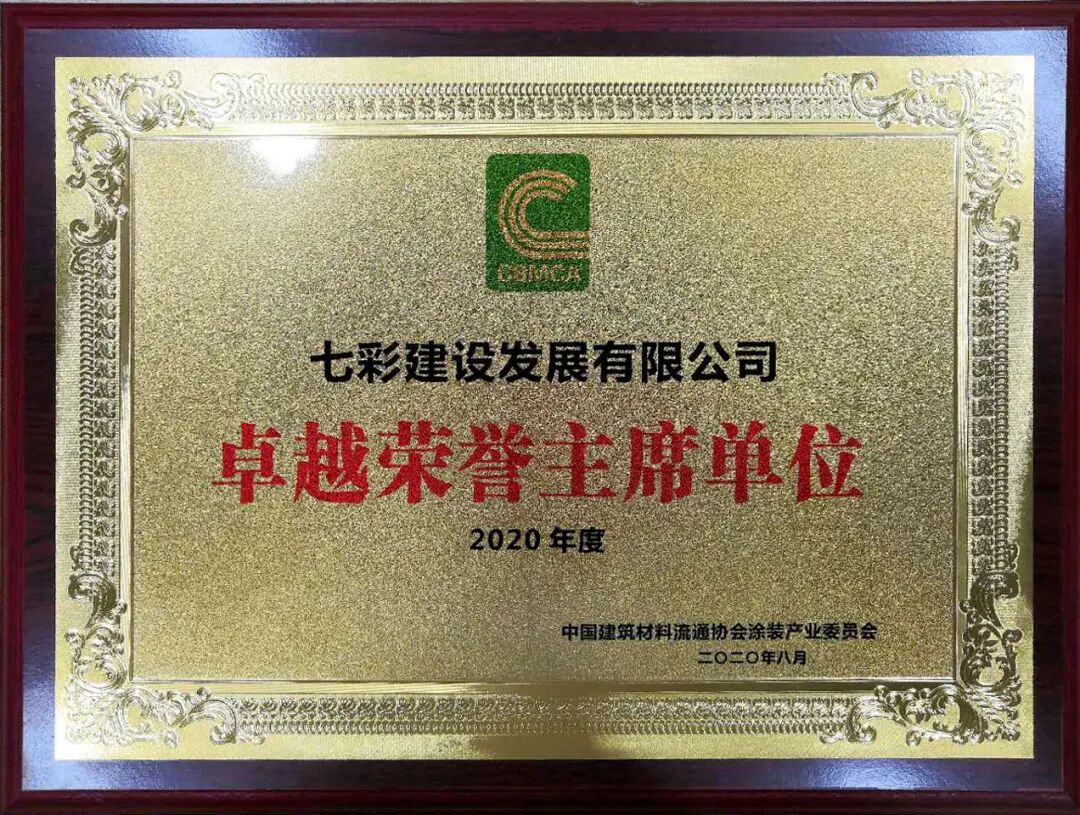 8月23日,会议举行新产品新技术交流会以及颁奖环节。会上,七彩建设发展有限公司荣获由中国建筑材料流通协会涂装产业委员会颁发的“2020年度卓越荣誉主席单位”荣誉称号。