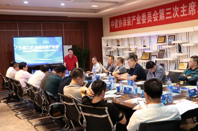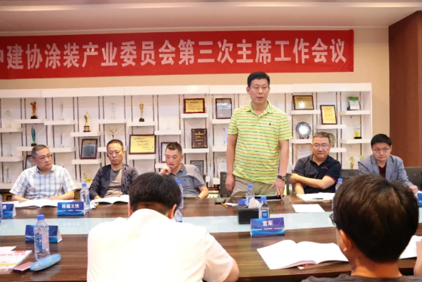 在8月21日下午,首先举行的是中建协涂装产业委员会第三次主席工作会议。中建协涂装委各副主席以上成员到达青岛稍作休息后,一同前来七彩建设发展有限公司总公司会议室参加本次会议。